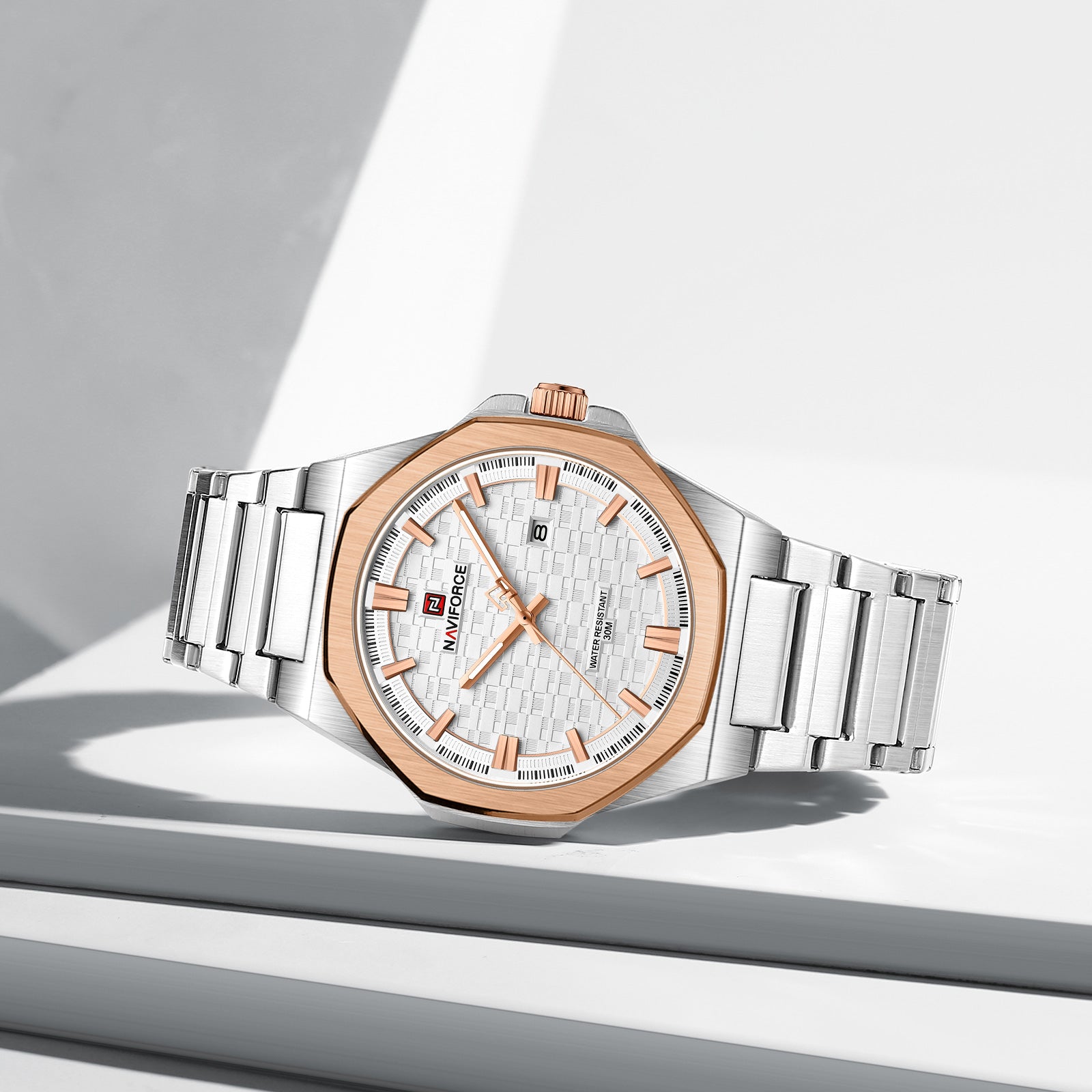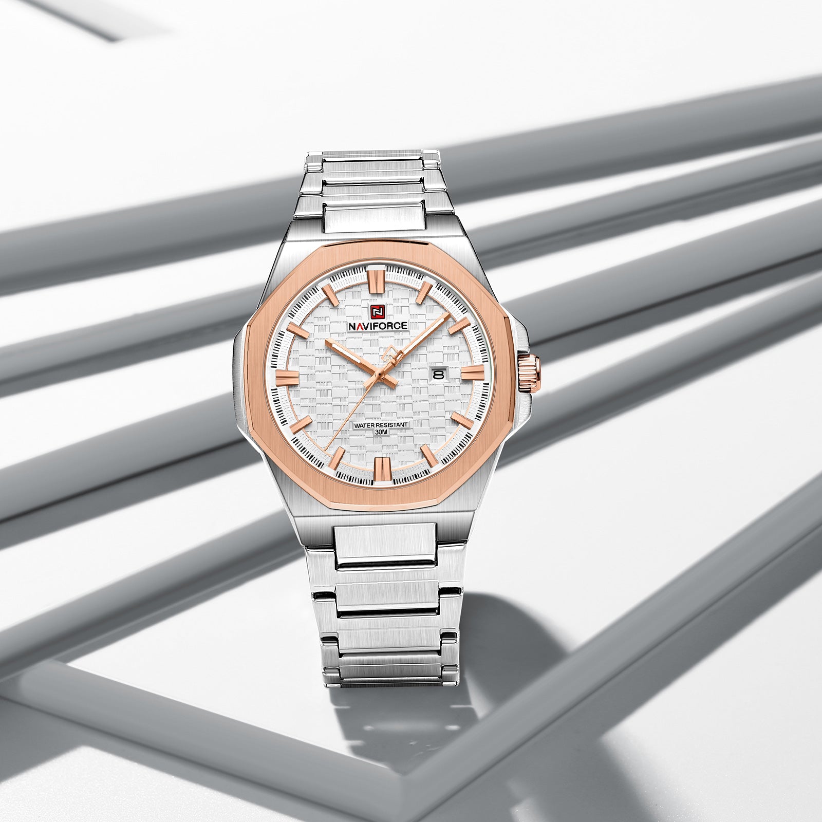 Naviforce 9245 Rio Quartz Men Watch - Silver RoseGold