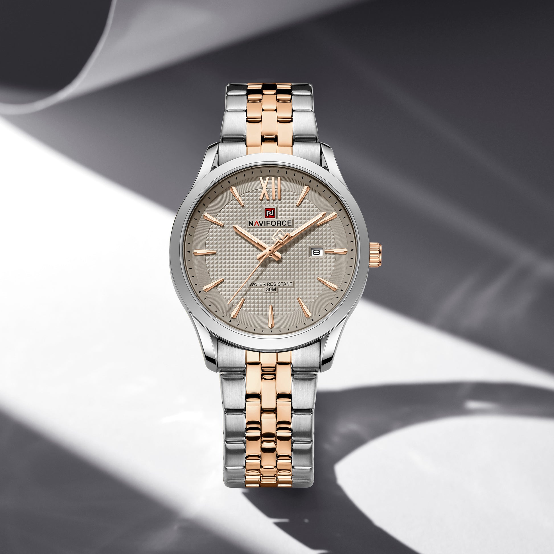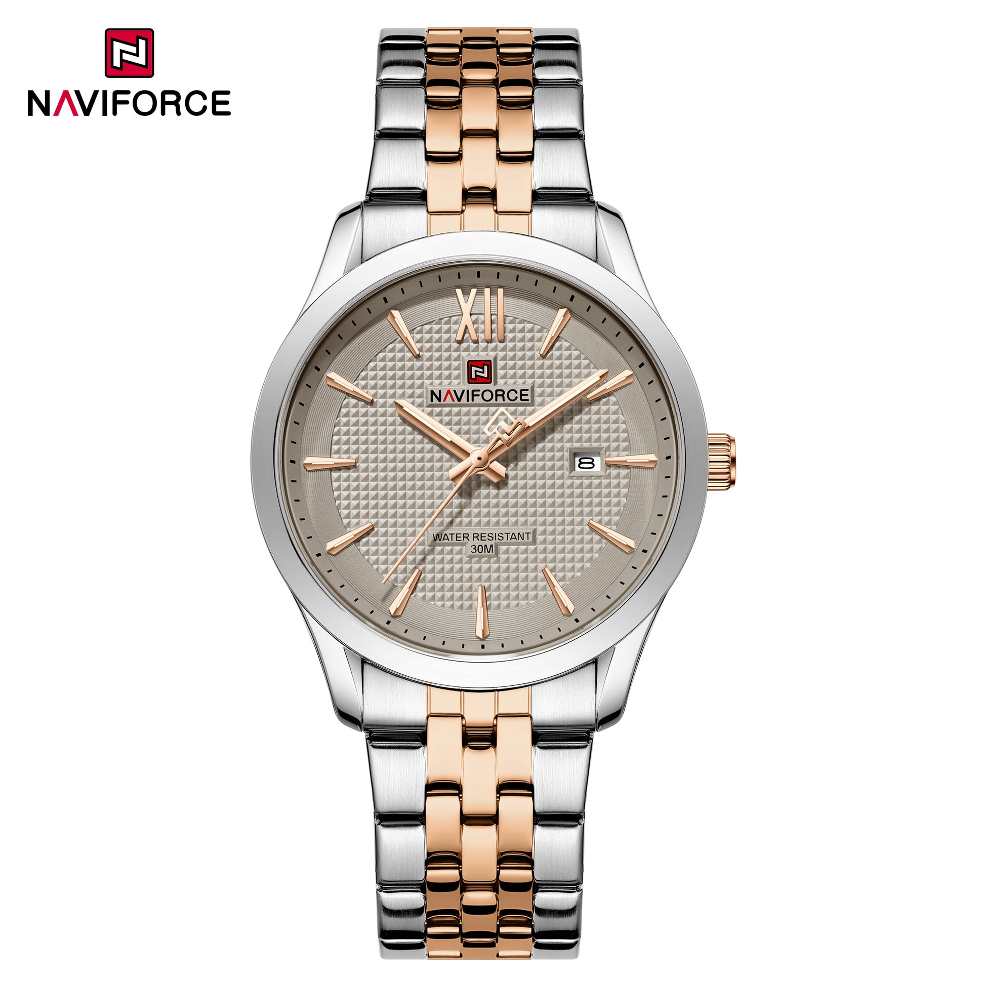 Naviforce 9255 Elite Grey Men Watch - Silver RoseGold Grey