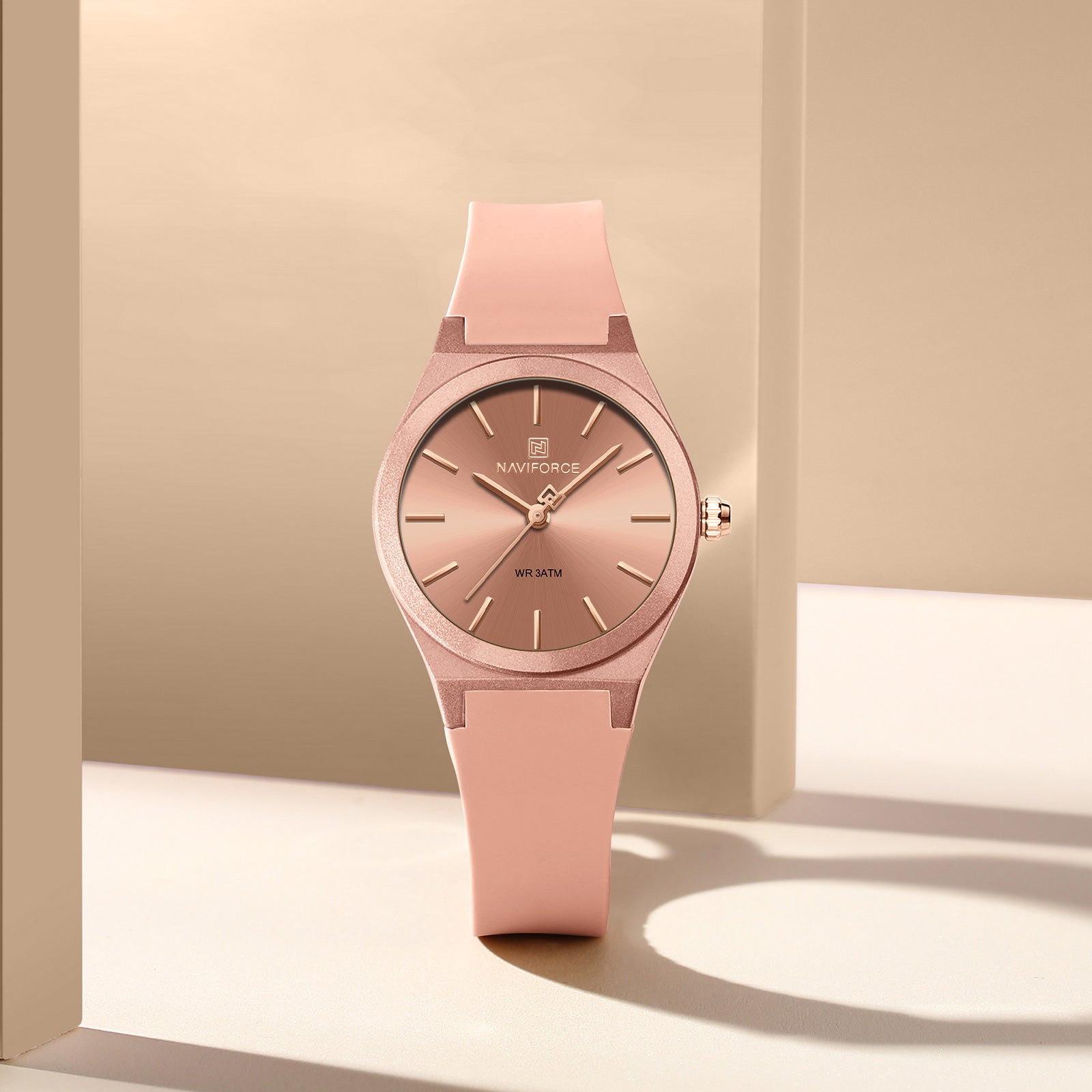 Get ready to conquer your day with the Naviforce 5056 Stellar Women Watch! This bold and adventurous timepiece features a durable silicon strap, perfect for those who love to take risks and embrace challenges. Stay ahead of the game and make a statement with this watch.