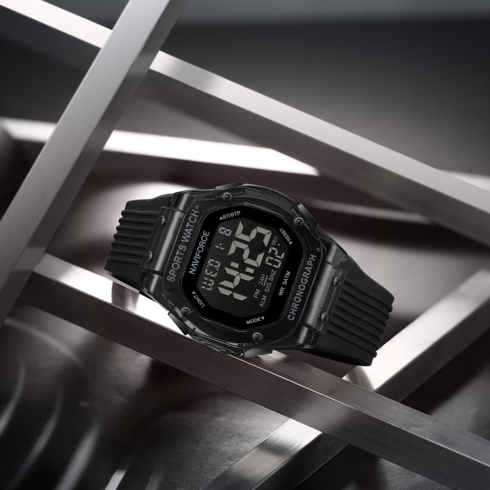 Elevate your style with the Naviforce 7113 Prime Digital Men Watch in black. This luxurious timepiece boasts a digital display, complete with date and day features, as well as an alarm function and many more. Timekeeping has never been more sophisticated and elegant. Make a statement with this exclusive watch.