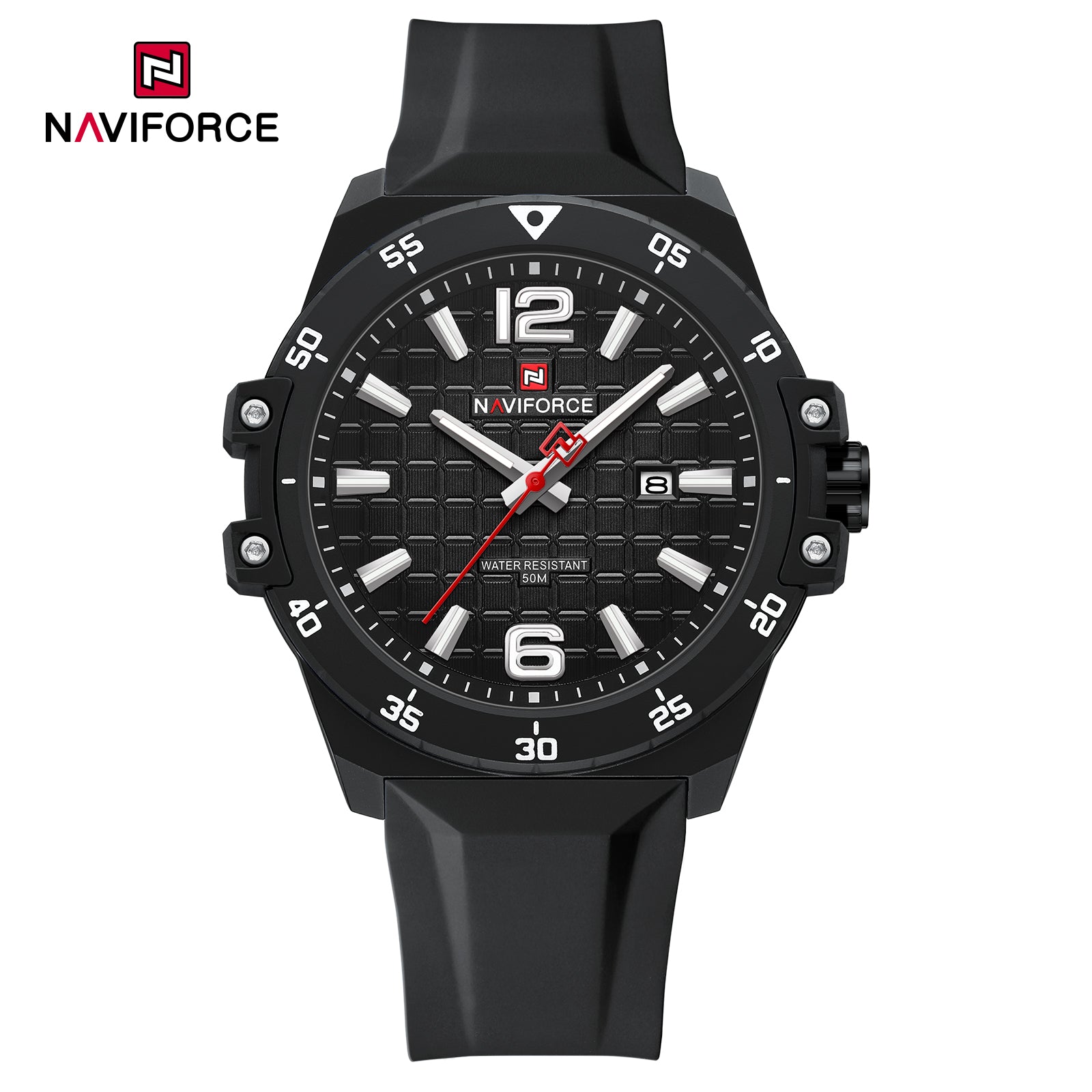 Discover the Naviforce 7122 Harmony Men Watch, an exquisite fusion of silicone craftsmanship and water resistance that transcends mere functionality. Its luminous markers cast a subtle glow, guiding you through twilight moments with elegance. This timepiece embodies a sophisticated art form, merging style and practicality in an exclusive statement of refinement.