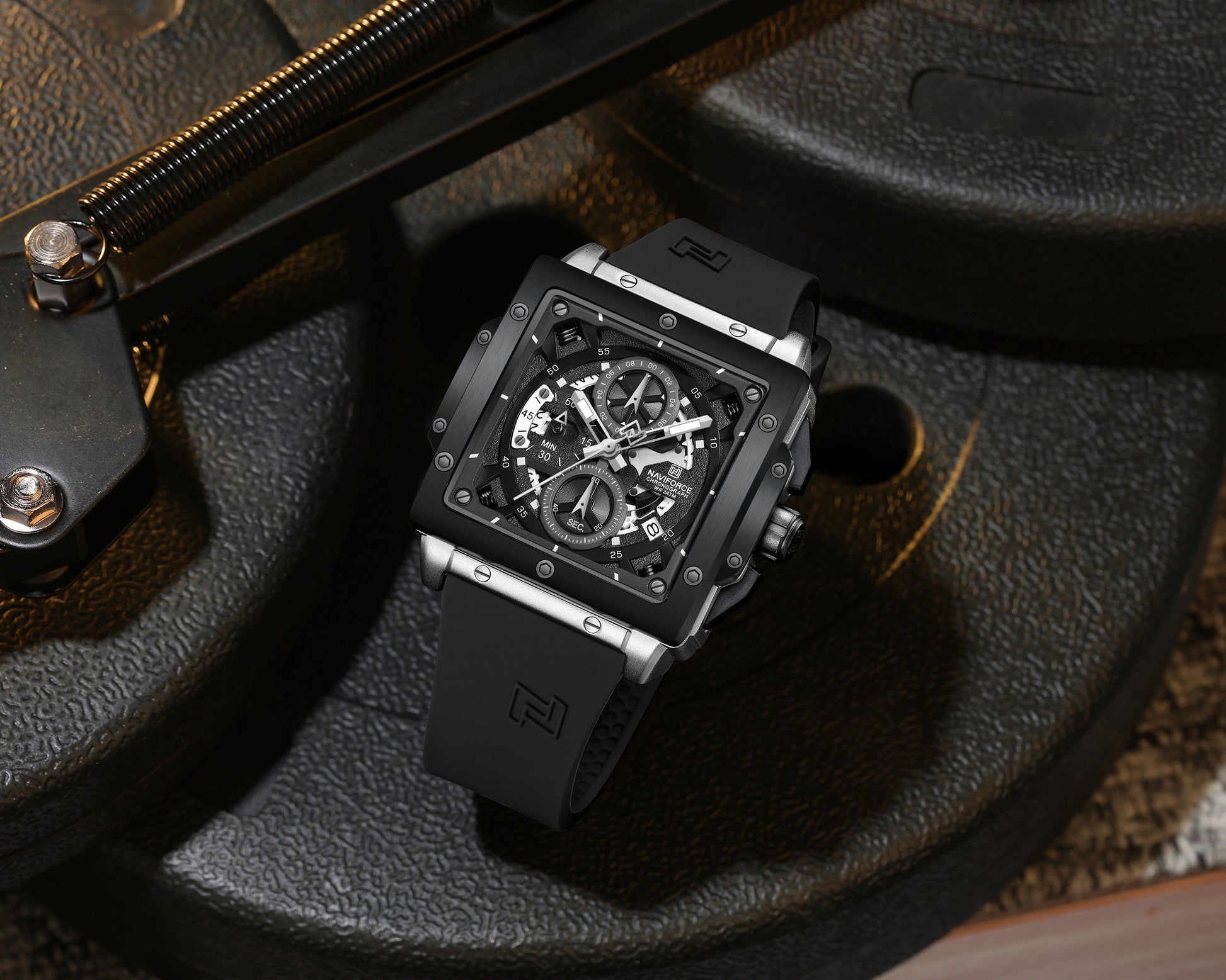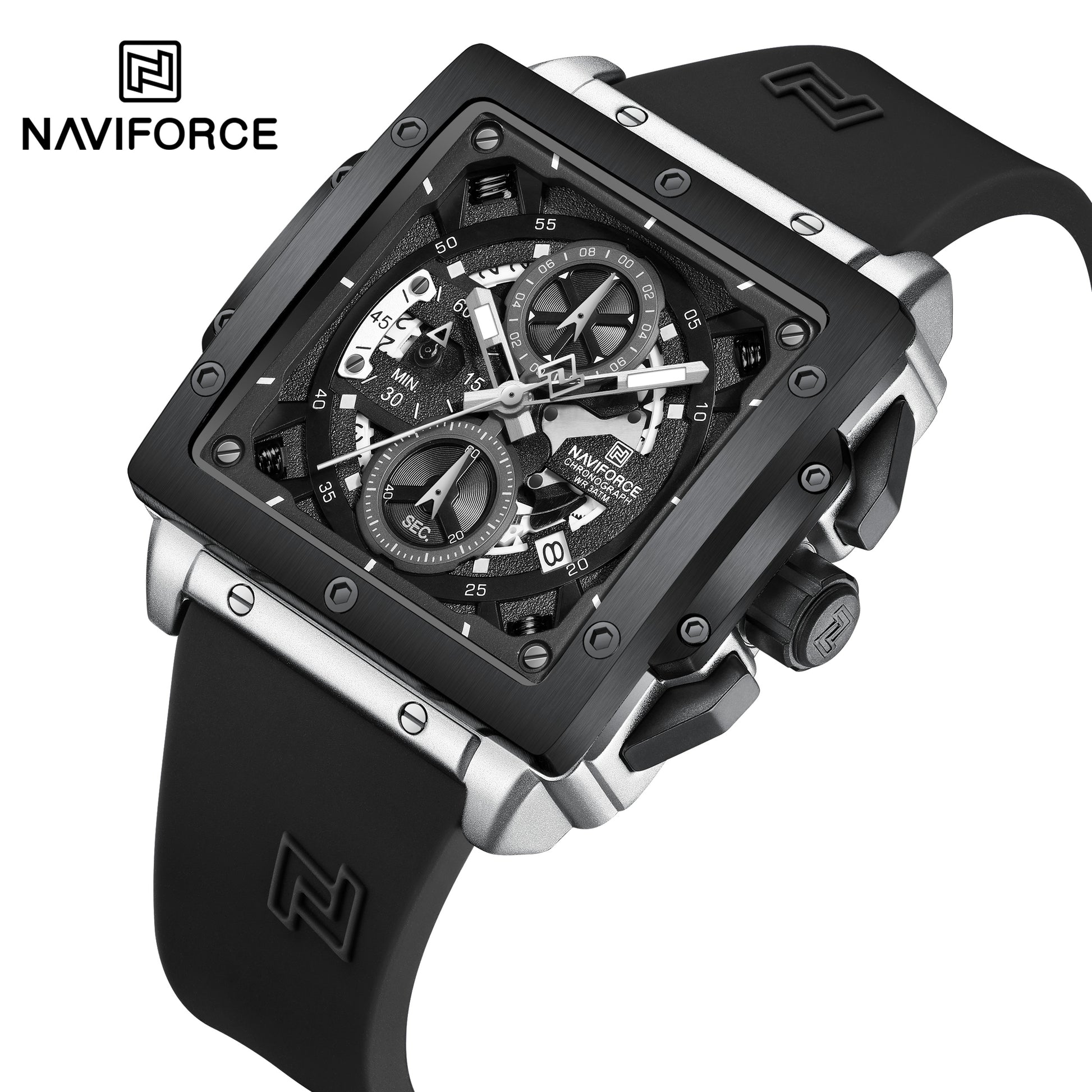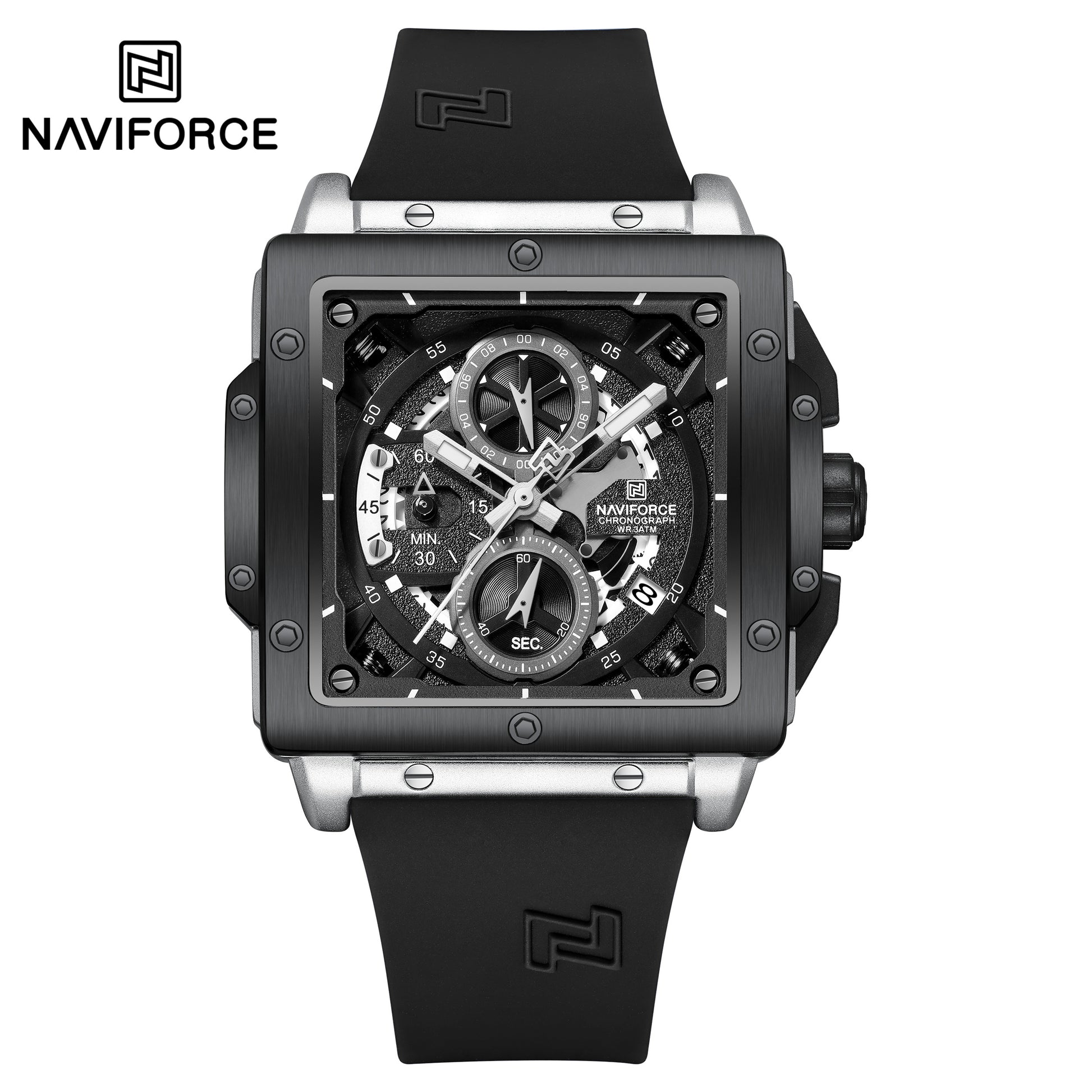 Naviforce 8064 Square Chrono Men Watch - Silver Black