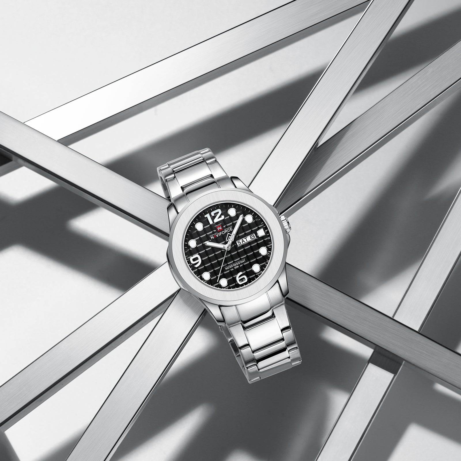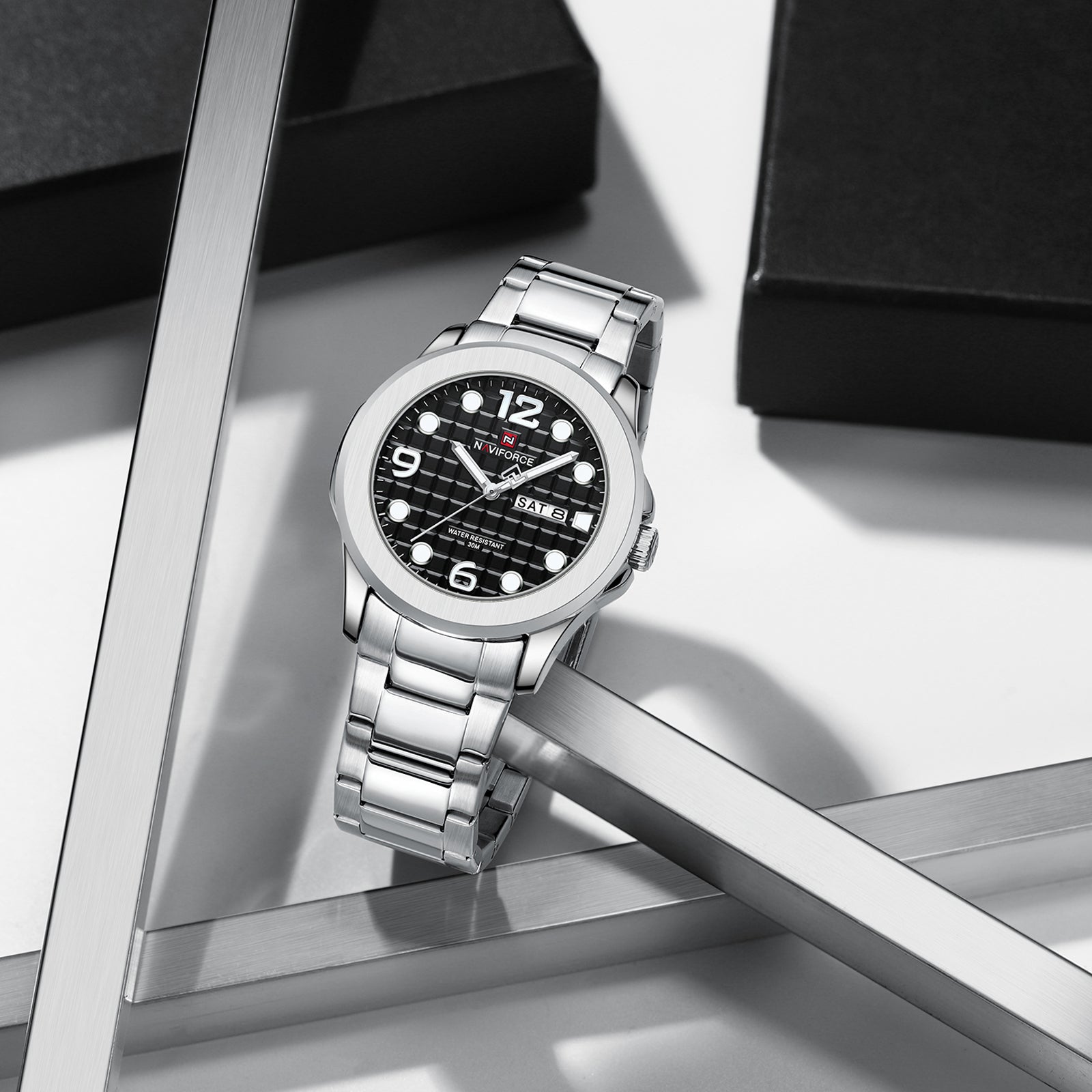 Naviforce 9244 Dynasty Men Watch - Silver Black