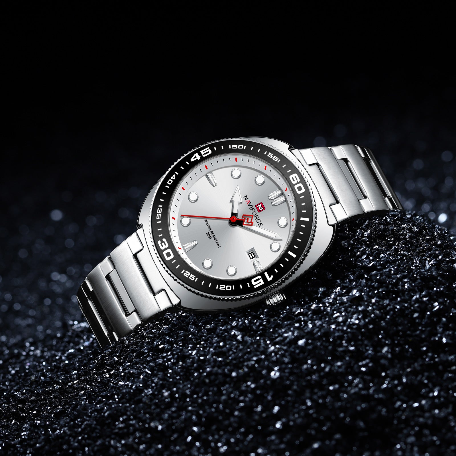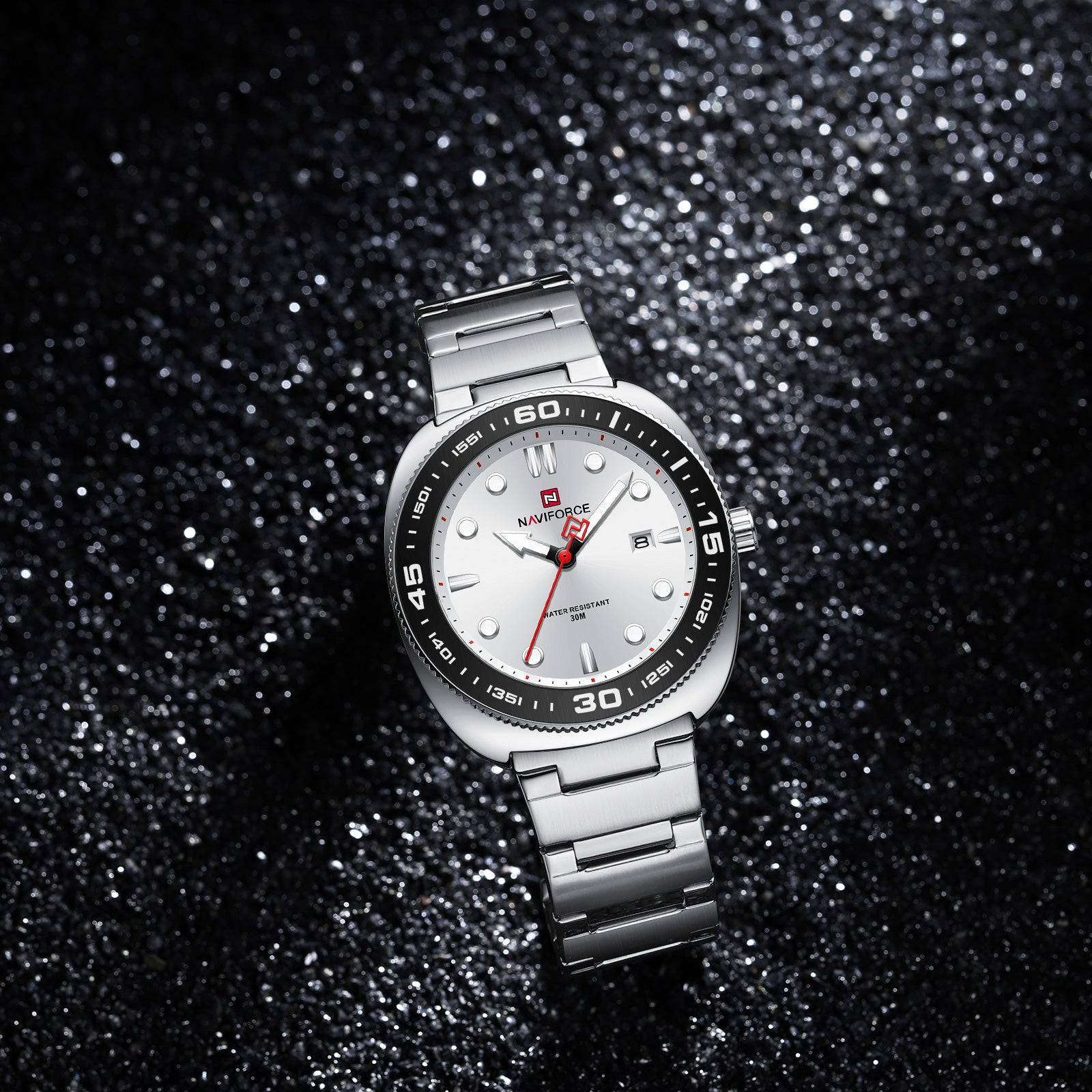 Introducing the Naviforce 9250 Zala Men Watch - Silver. This sleek watch features a silver color design and a windows date display, making it easy to stay on track with your schedule. With a days of the week display and 3ATM water-resistance, this watch is both functional and stylish.