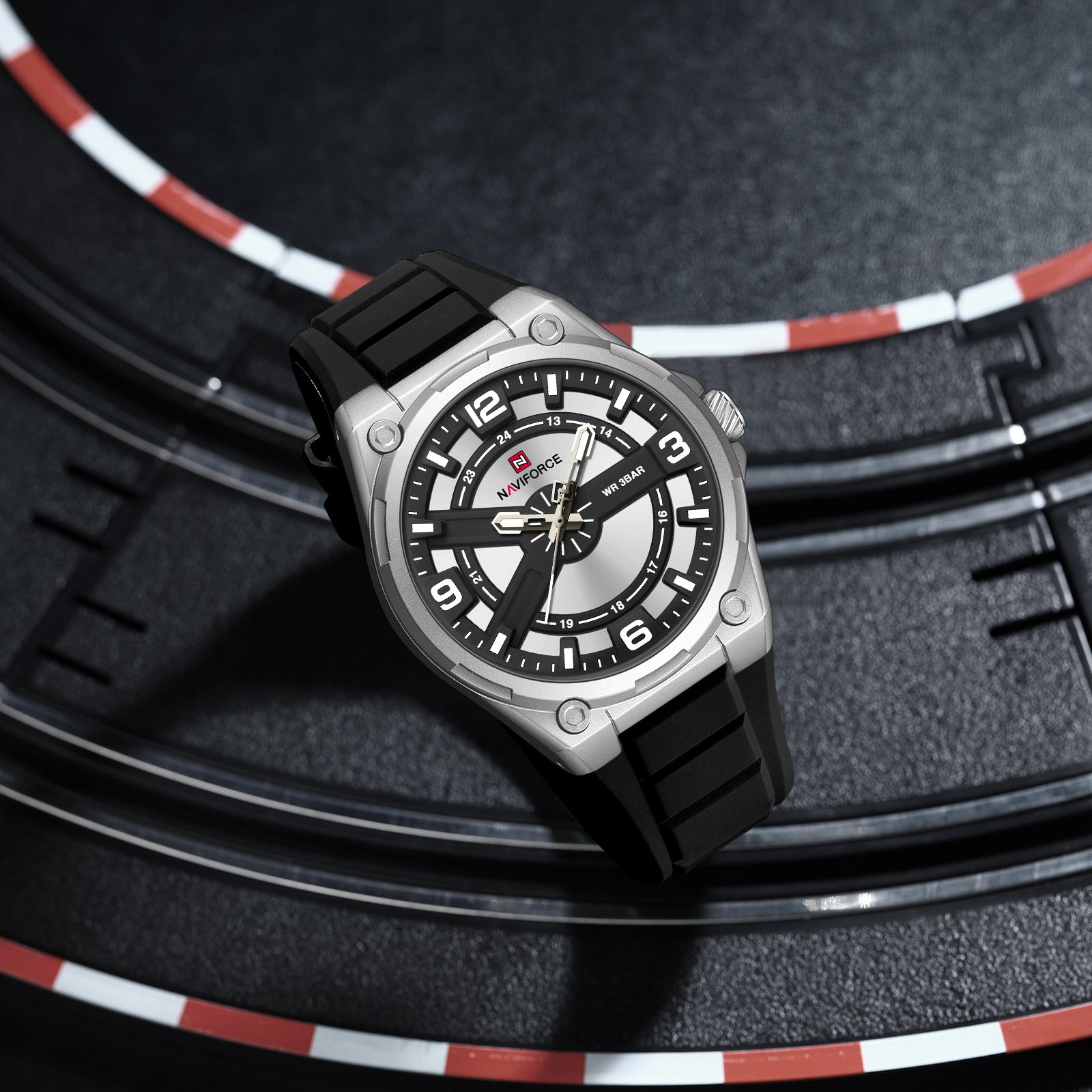 Naviforce 9260 Quantum Silicone Men Watch - Silver Black