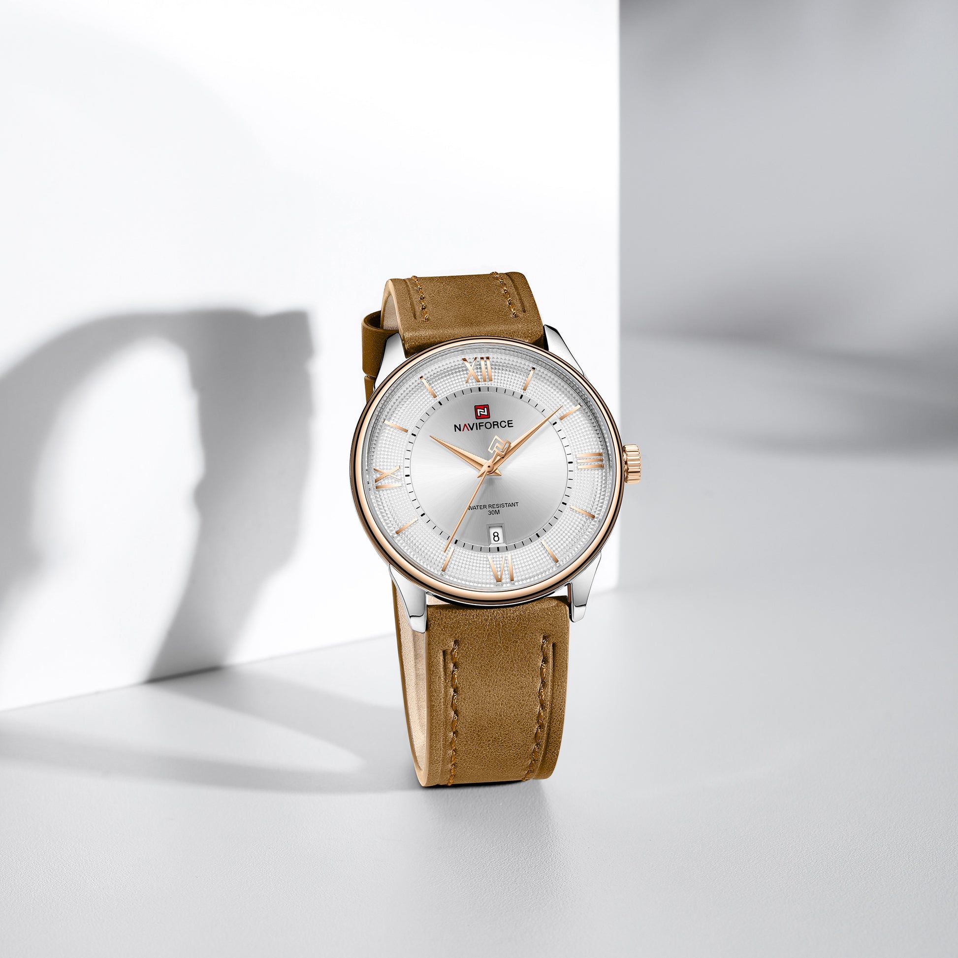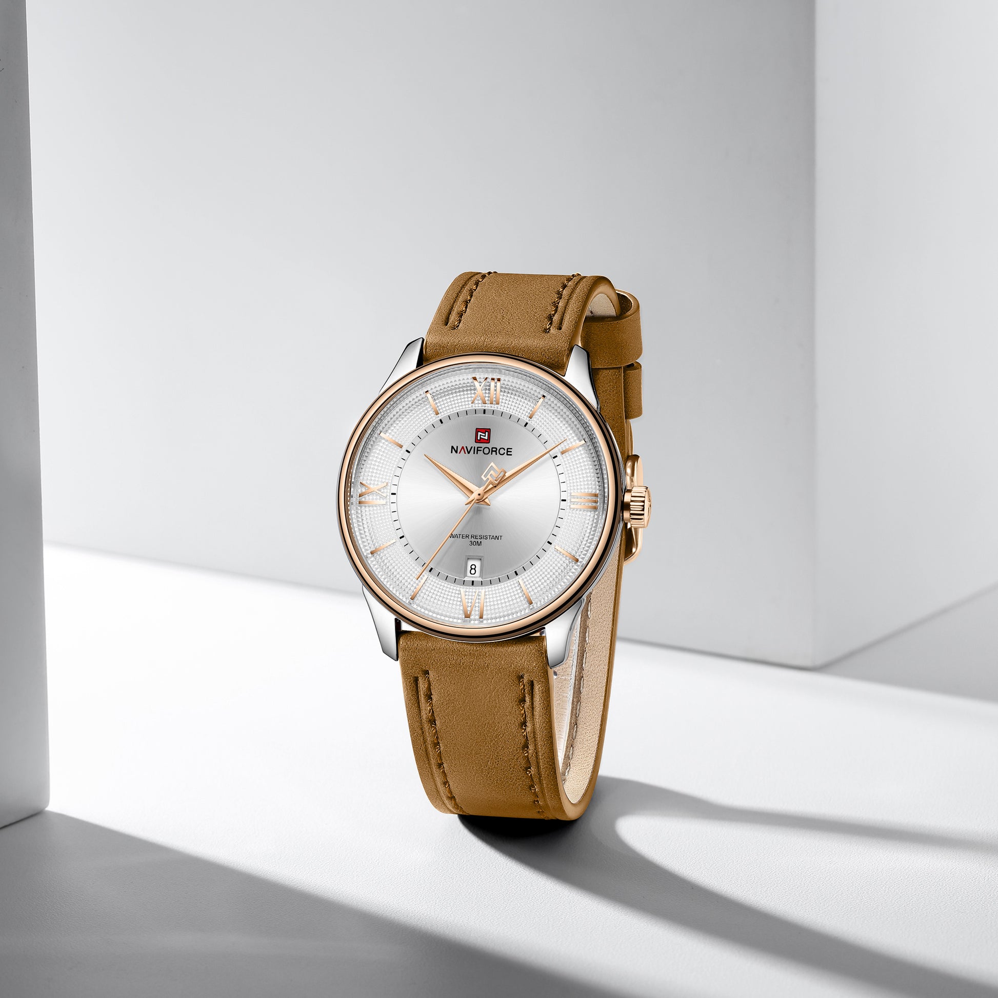 Naviforce 9272L Spectra Men Leather Watch - Brown-RoseGold