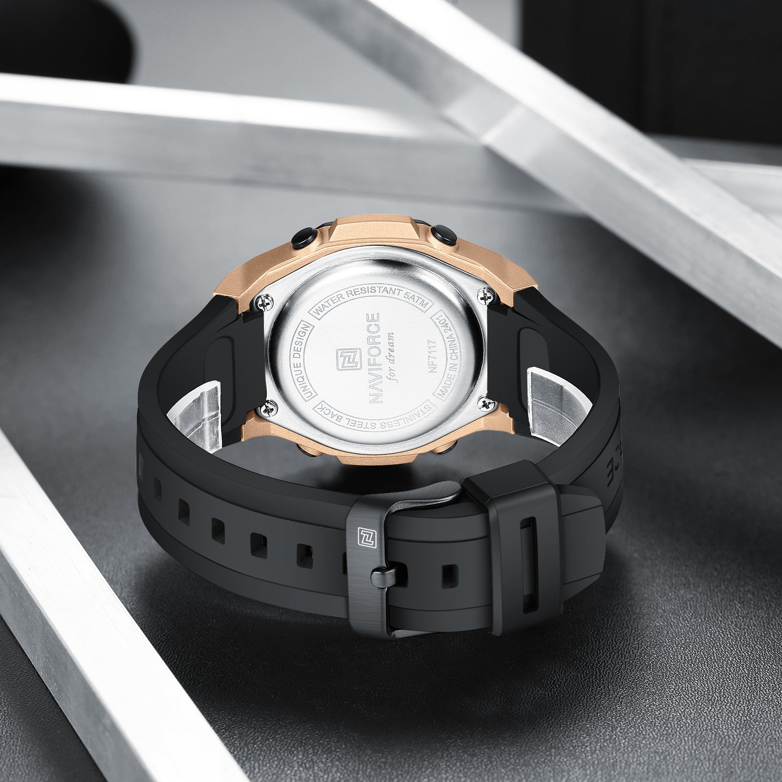Naviforce NF7117 Volda Digital Men Watch - RoseGold Black