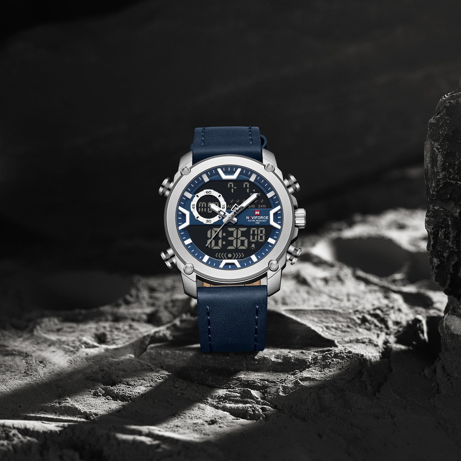 The Naviforce 9261 Urban Men Leather Watch combines classic analog design with modern digital functionality. With 3ATM water resistance, date and day display, and a backlight for night vision, this watch is perfect for any urban adventurer. Plus, the genuine leather strap, alarm, stop-watch, and countdown features add convenience and style. Upgrade your timepiece game today!
